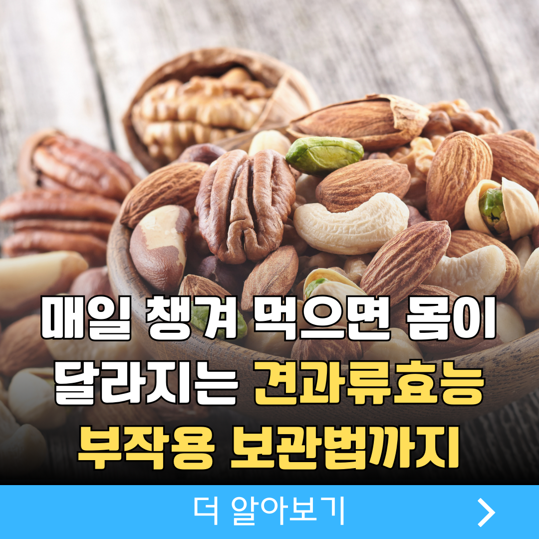 견과류는 작지만 매우 강력한 영양 덩어리로, 우리 몸 전반에 긍정적인 변화를 주는 대표적인 건강식품입니다. 혈관 건강, 뇌 기능 개선, 피부 관리, 면역력 강화, 장 건강, 당뇨 예방, 체중 관리까지 다양한 효과를 기대할 수 있지만, 올바른 섭취량과 보관법을 지키는 것이 무엇보다 중요합니다.