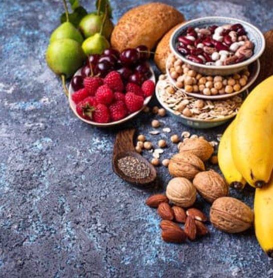불용성 식이섬유: 물에 녹지 않지만 부피를 증가시켜 장을 자극하여 배변 활동을 도와줌 (예: 통곡물, 채소, 견과류 등)