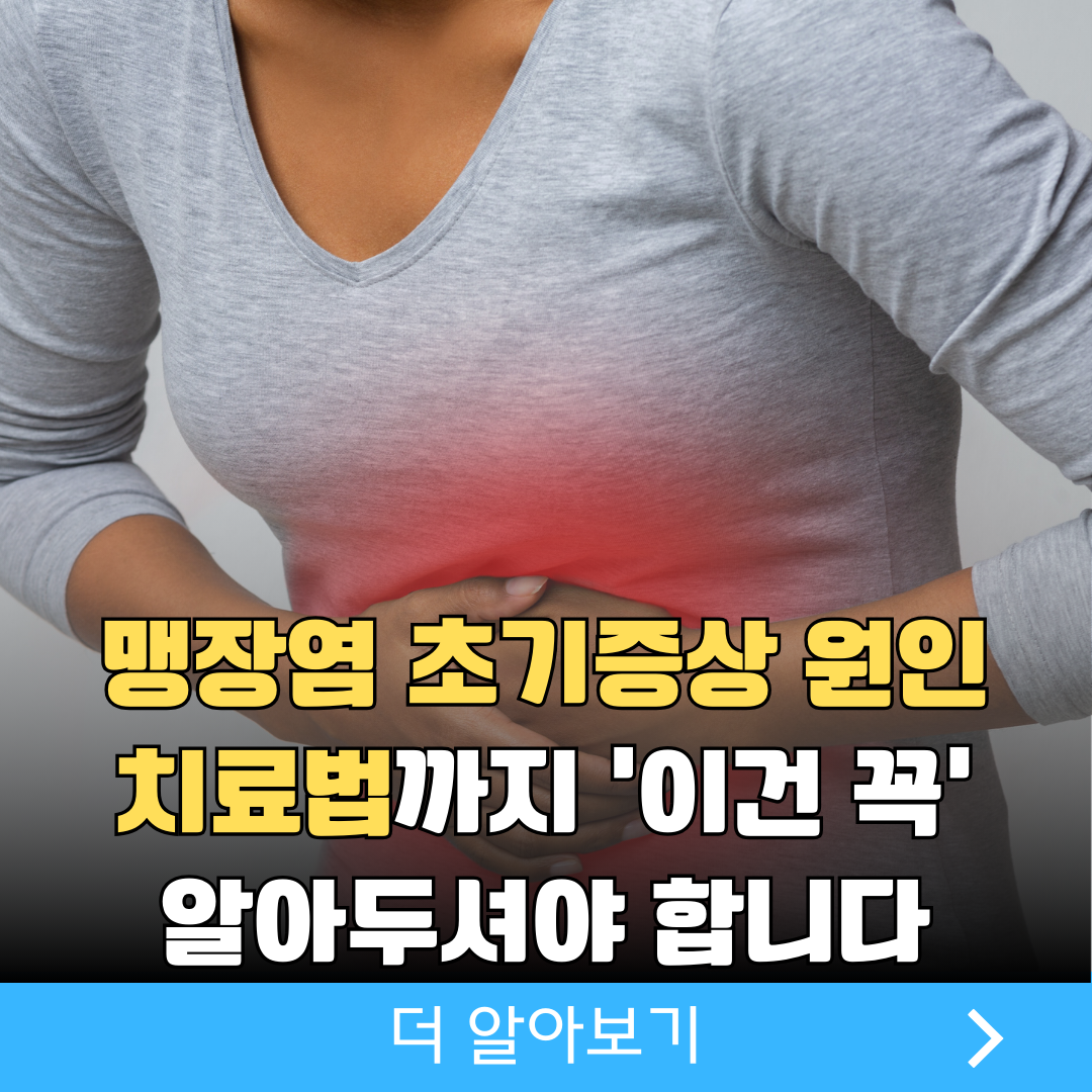 따라서 맹장염은 단순한 복통으로 넘기기보다는, 초기 증상과 원인을 정확히 알고, 조기에 치료받는 것이 가장 중요한 질환 중 하나입니다. 지금부터 맹장염 초기증상 6가지, 원인 5가지, 치료 방법 4가지를 체계적으로 설명해드립니다.