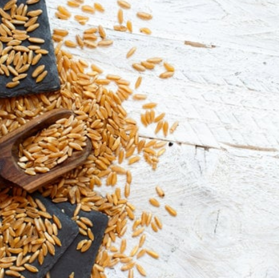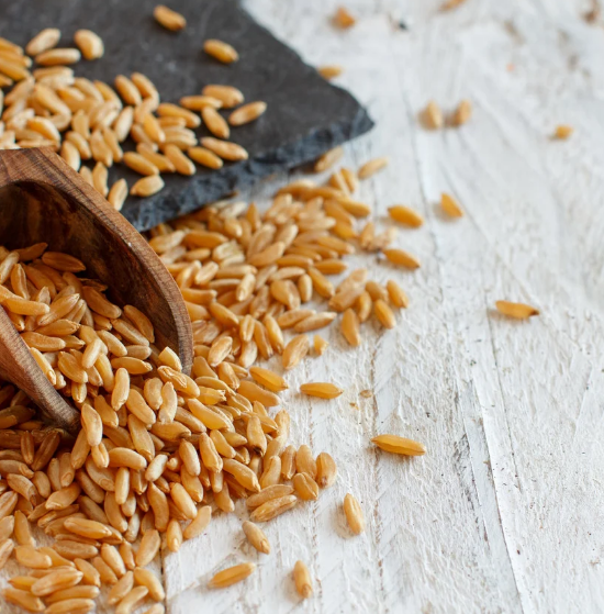 카무트(Kamut)는 고대 이집트에서 재배되던 고대 밀의 일종(품종명: Triticum turgidum ssp. turanicum)으로, 현대 밀보다 단백질, 미네랄, 항산화 물질이 풍부한 것이 특징입니다.