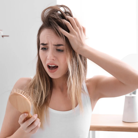 휴지기 탈모: 급격한 체중 감량, 스트레스, 출산, 영양결핍 등으로 인해 모발이 성장기에서 휴지기로 빨리 이동하여 빠지는 현상