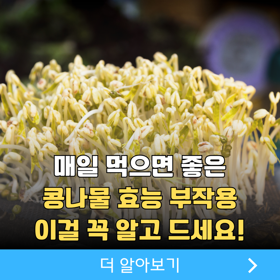 콩나물 부작용에는 재배 과정에서 청결하지 못할 경우 세균, 곰팡이 오염이나 농약 잔류 가능성이 있으므로, 반드시 충분히 씻고 익혀서 섭취해야 합니다.