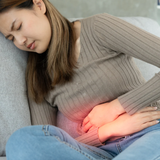 복부를 누르면 압통이 느껴지고, 배가 단단하게 뭉친 느낌이 들 수 있습니다. 특히 심할 경우 앉거나 눕는 자세가 불편하게 느껴집니다.